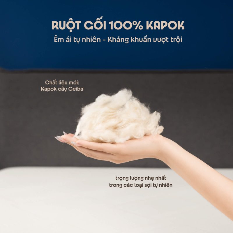 Khác với gối bông thông thường, sợi Kapok tự nhiên nhập khẩu nhẹ nhất trong các loại sợi thiên nhiên mang đến trải nghiệm ngủ thoáng khí vượt trội — cảm giác mát nhẹ và dễ chịu suốt đêm, đặc biệt trong khí hậu nóng ẩm.